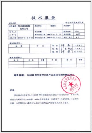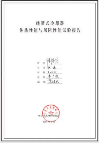 繞簧式冷卻器性能試驗報告